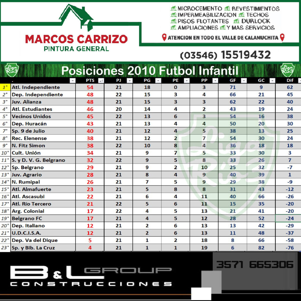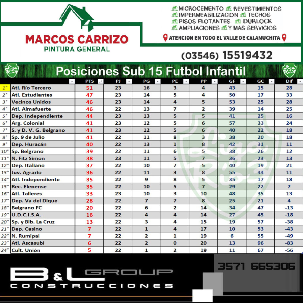 Sólo restan jugar un par de partidos de la última fecha de la etapa clasificatoria del torneo de divisiones inferiores de la Liga Regional Riotercerense y la única incógnita es saber si Atlético Talleres de Berrotarán o Sportivo 9 de Julio ocupará la última plaza disponible en la Copa de Oro.