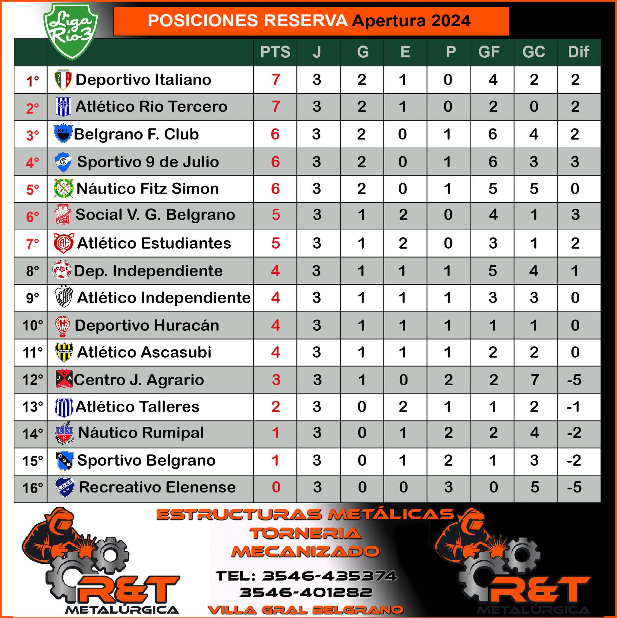 TABLAS DE POSICIONES DE PRIEMRA Y RESERVA – LIGARIOTRES