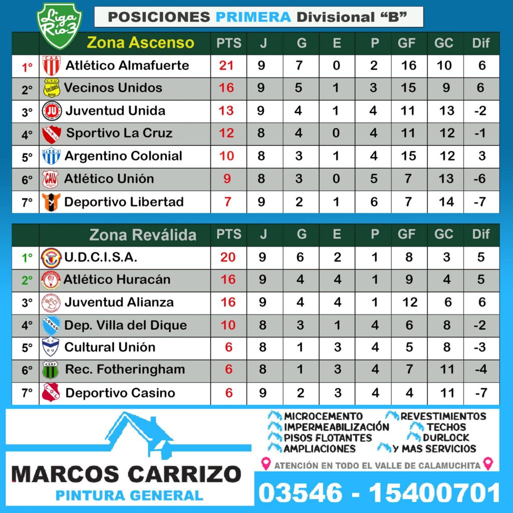 Ambos equipos ganaron sus respectivos partidos este domingo y se mantienen con posibilidades de amargar al principal candidato Atlético Almafuerte.