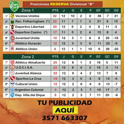 TABLA DE POSICIONES FINAL – ETAPA CLASIFICATORIA – RESERVA – VÍA LIGARIOTRES