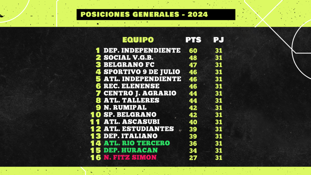 LA TABLA GENERAL DE LA TEMPORADA: HURACÁN O ATLÉTICO, UNO DESCIENDE Y EL OTRO PROMOCIONA