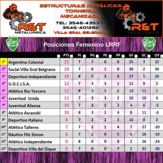Es imparable el andar del equipo femenino de Argentino Colonial que venció a Atlético Talleres por 4 a 1 e hilvanó su séptima victoria en igual cantidad de encuentros disputados en el Torneo Oficial de la Liga Regional Riotercerense.