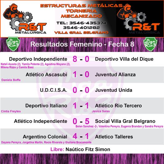 TODOS LOS RESULTADOS DE LA 8° FECHA DEL TORNEO DE FÚTBOL FEMENINO – VÍA MAURICIO MARATTIN