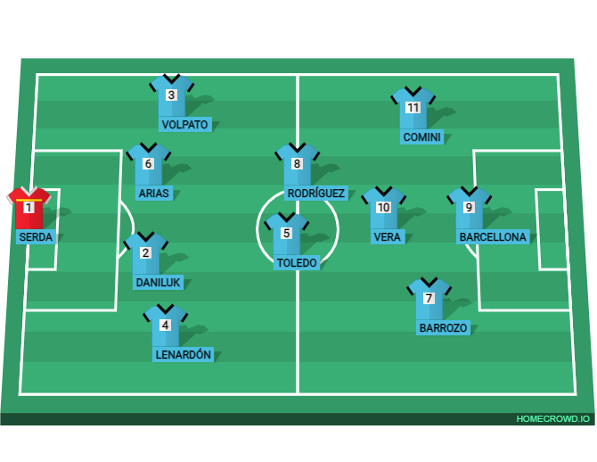 Goles: PT, 25m Agustín Cuello (LR) y 35m Cristian Rodríguez (B); ST, 14m Agustin Muñoz (LR) y 49m Iván Drussian (LR)