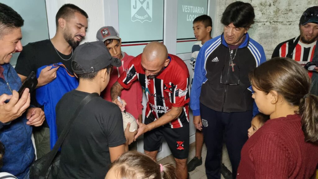 Además del buen partido, tuvo la deferencia de mostrarse predispuesto a firmar autógrafos, camisetas y sacarse fotos con buena parte de los hinchas que se quedaron para aplaudirlo al término del juego. Ídolo total.