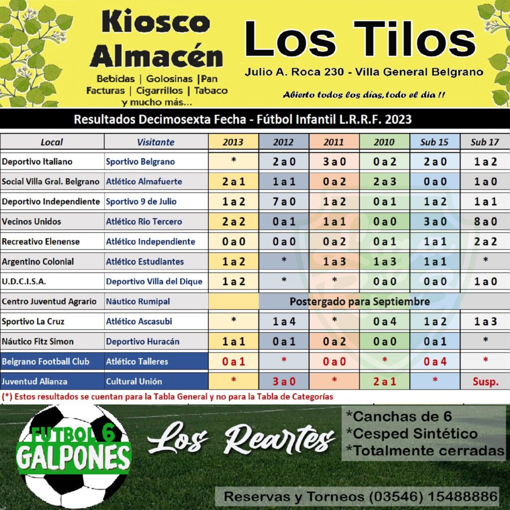 Pasó la 16ª fecha del torneo de Fútbol Infantil de la Liga Regional Riotercerense y se disputaron dos duelos “clásicos” entre Vecinos Unidos y Atlético Río Tercero en el Puma Usandivares y entre Deportivo Inependiente y Sportivo 9 de Julio en el Pura Molina.