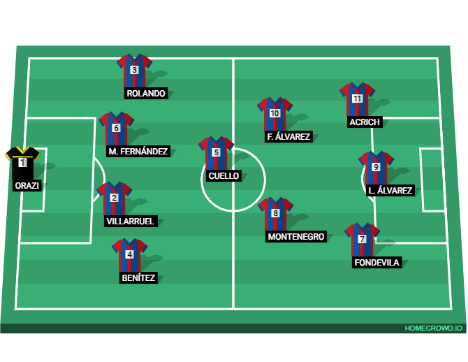 Juan Cruz Acrich abrió el marcador a los 28 minutos del primer tiempo pero el “Celeste”, que había comenzado mejor en el primer cuarto de hora, lo igualó rápidamente a través de Cristian “Cebolla” Rodríguez en una contra demoledora. La mala noticia para los de Andrés Ríos fue la lesión de Alexis García que debió ser reemplazado por Diego Ullrich.