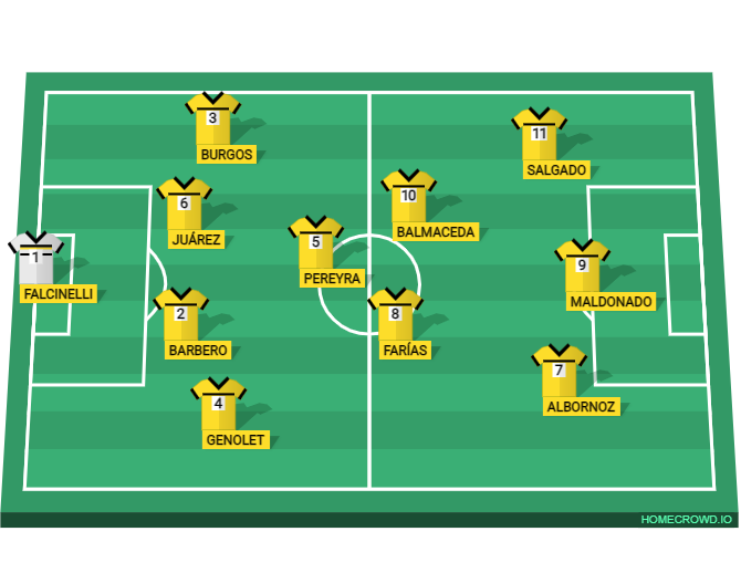 Expulsados: No hubo. Incidencia: PT, 5m Mauricio Albornós (AA) le contuvo un penal a Axel Salgado (VU)