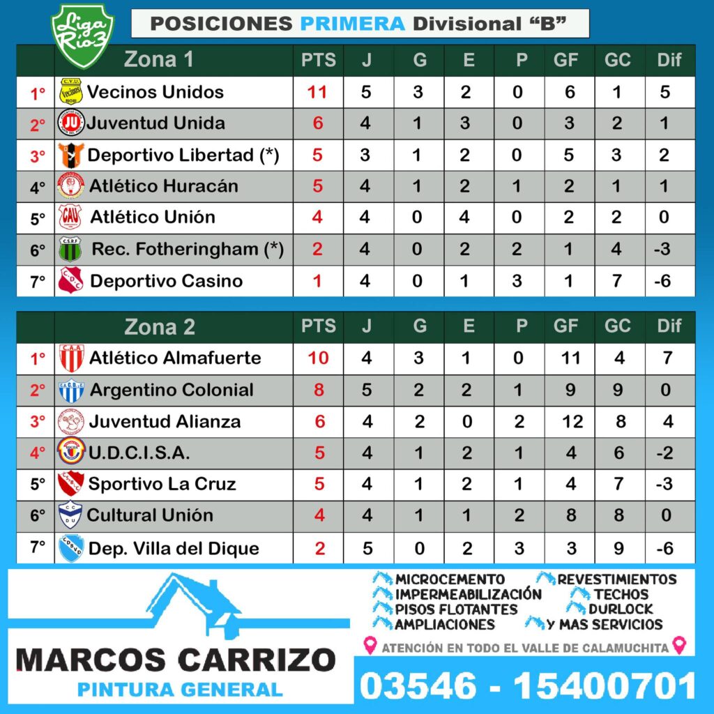 Ganaron Vecinos Unidos y Atlético Almafuerte. Los dos equipos, grandes candidatos en el torneo de la Divisional B, volvieron a imponerse este domingo y marcan el rumbo en las respectivas zonas.