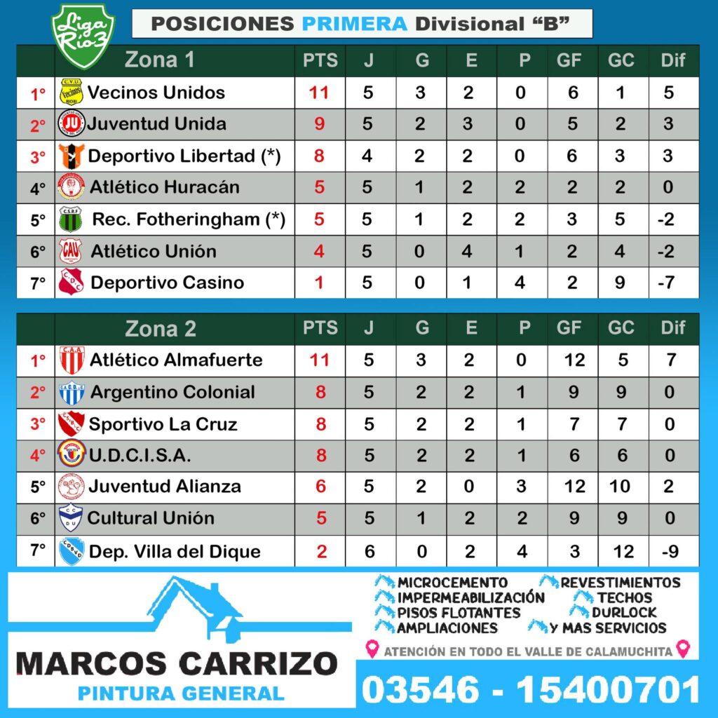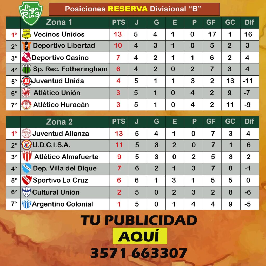 TABLA DE POSICIONES – PRIMERA Y RESERVA – VÍA LIGA RIOTRES