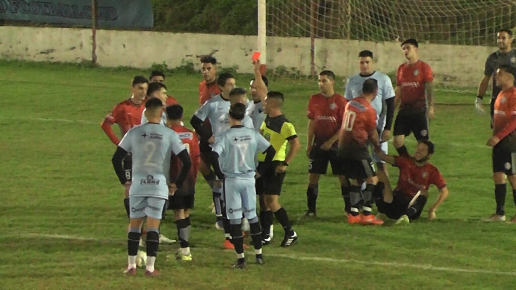 Todo se complicó para el “Celeste” en pocos minutos, ya que le remontaron el partido y se quedó en inferioridad numérica. Antes de la ejecución de un tiro libre a favor de Belgrano y en un tumulto que se armó en el área, Gino Testa empujó a Fabricio Petrocchi, fue observado por el árbitro y vio la roja directa.