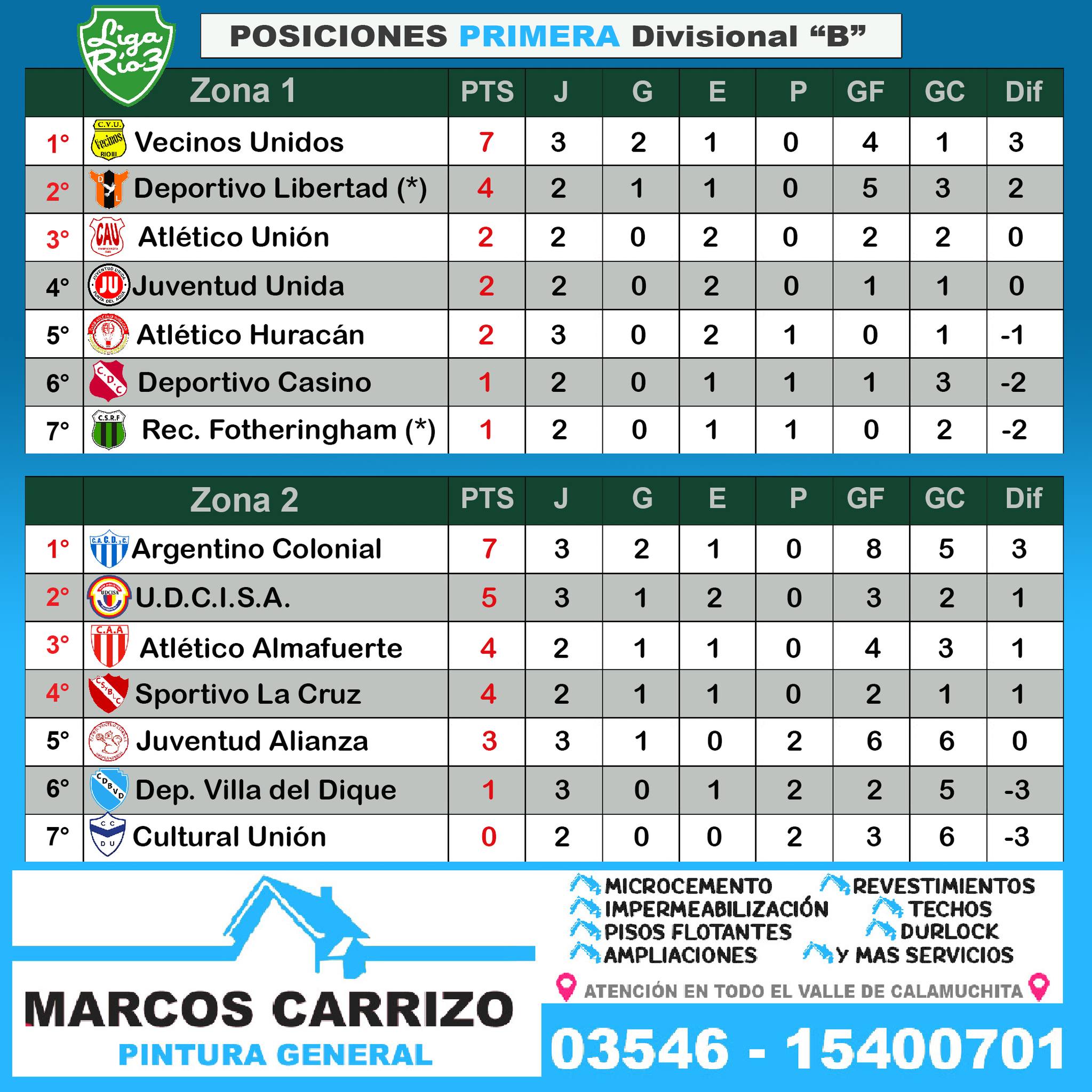 LAS TABLAS DE POSICIONES DE LAS DOS ZONAS DEL ASCENSO – VÍA LIGARIOTRES
