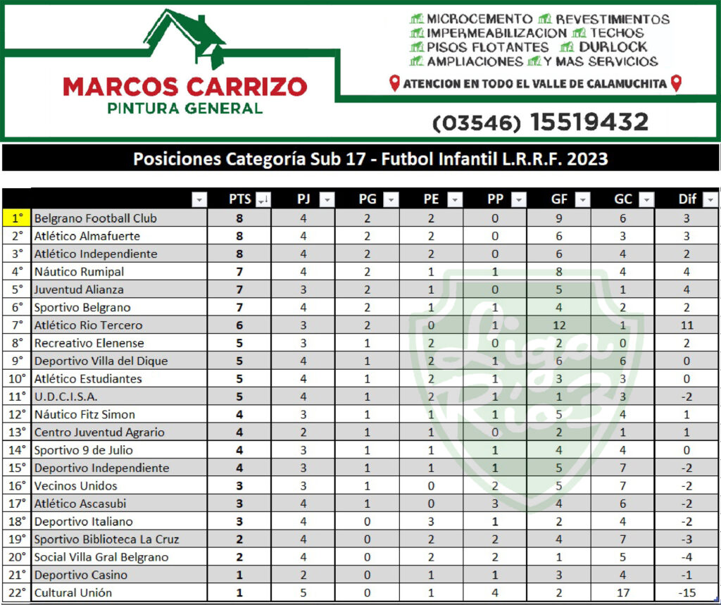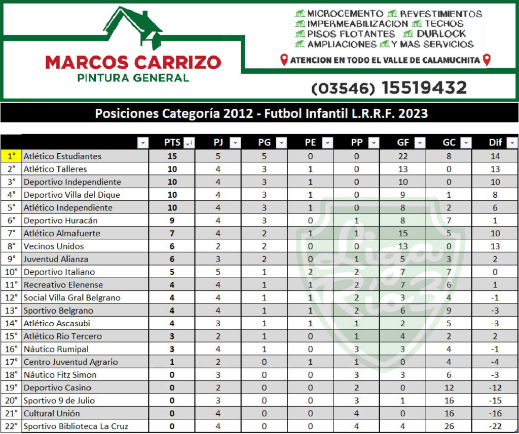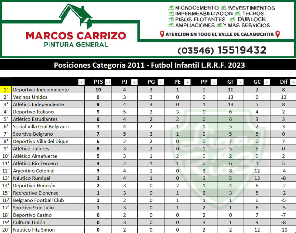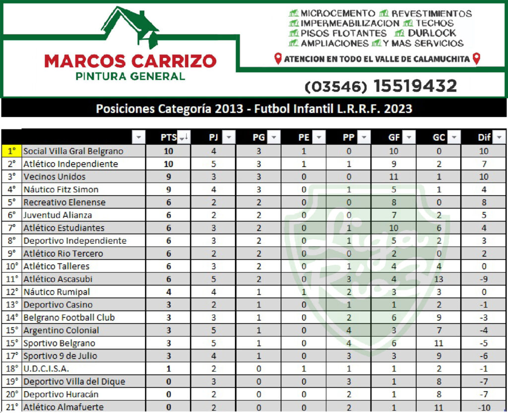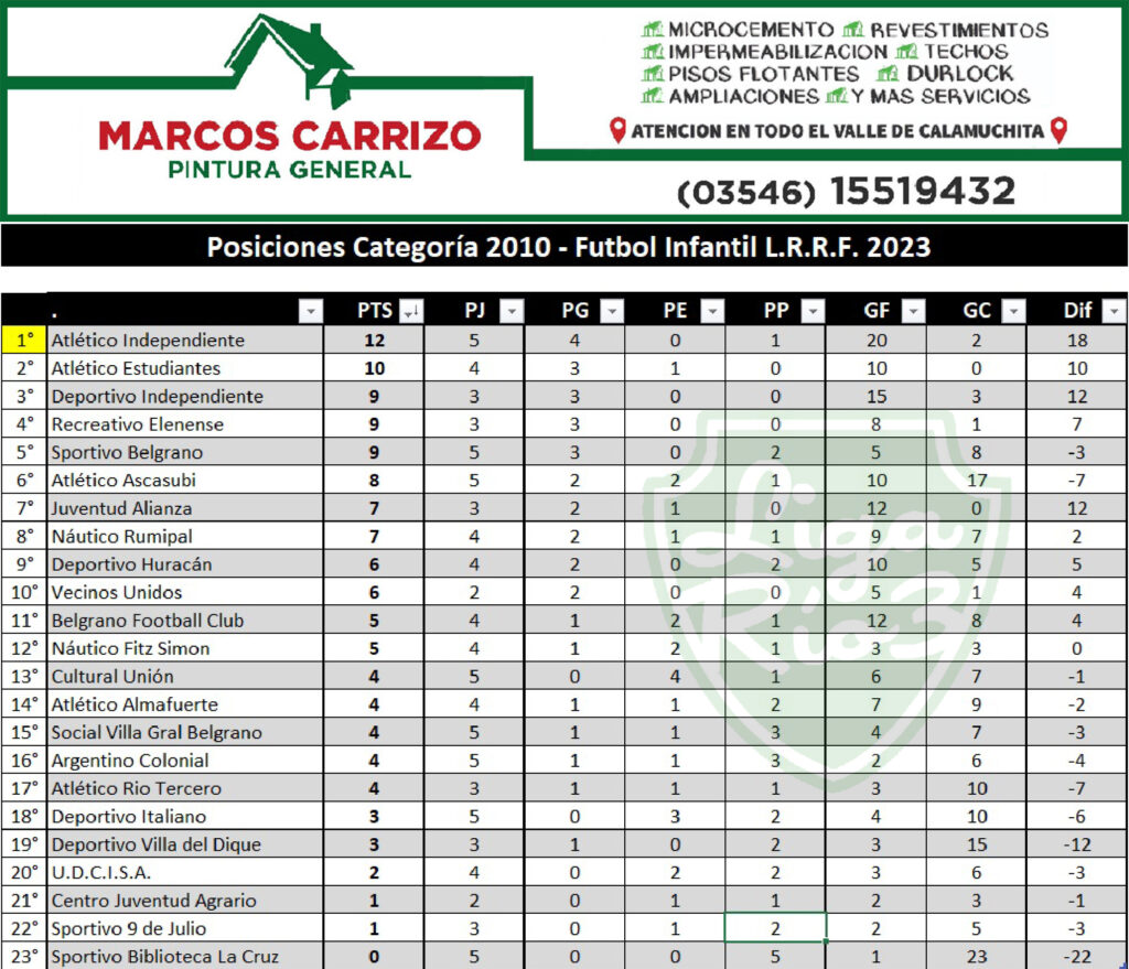 Este sábado se disputó parcialmente una nueva fecha del Departamento de Fútbol Infanto – Juvenil de la Liga Regional Riotercerense de Fútbol, la 5º, que se completará este lunes en cancha de Cultural Unión de Despeñaderos cuando Juventud Alianza reciba a Vecinos Unidos.