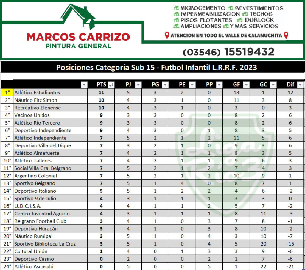 LOS RESULTADOS DE LA QUINTA FECHA (VÍA MAURICIO MARATTIN – INSTAGRAM LIGARIOTRES)