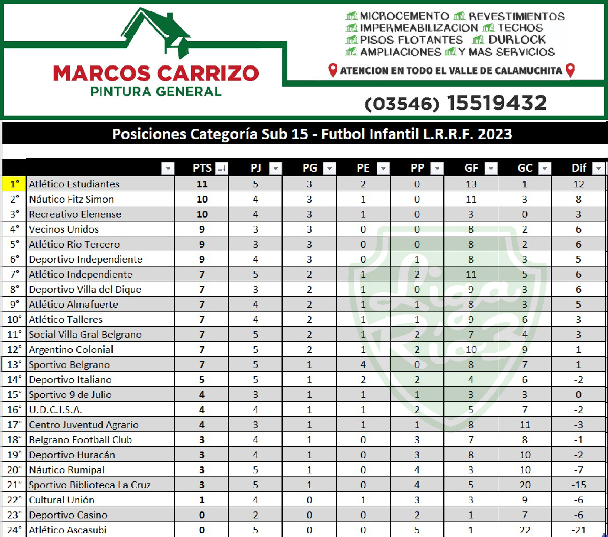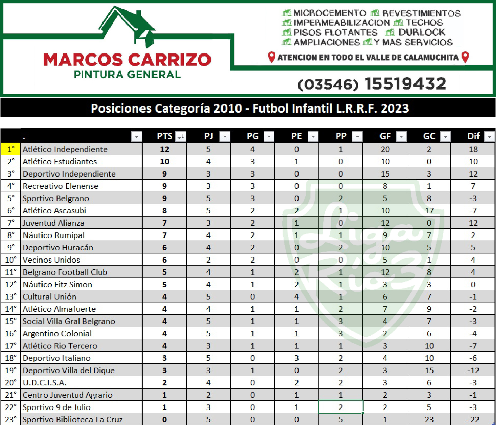 Este sábado se disputó parcialmente una nueva fecha del Departamento de Fútbol Infanto – Juvenil de la Liga Regional Riotercerense de Fútbol, la 5º, que se completará este lunes en cancha de Cultural Unión de Despeñaderos cuando Juventud Alianza reciba a Vecinos Unidos.