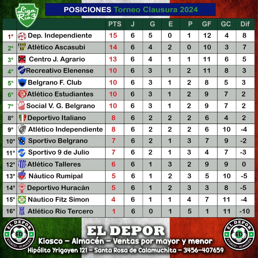 La jornada se dividió en dos: viernes y domingo. Deportivo Independiente le metió cinco goles a su homónimo de Hernando, en una fecha en la que también Deportivo Italiano goleó a Atlético Río Tercero que sigue último y está cada vez más complicado.
