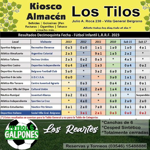 TODOS LOS RESULTADOS DE LA 15ª FECHA DEL TORNEO DE FÚTBOL INFANTIL – VÍA MAURICIO MARATTIN Y LIGA RIOTRES