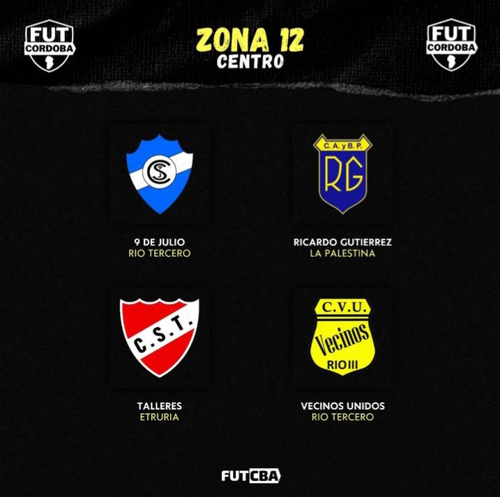 Nueve y Vecinos integran la Zona 12 de la Región Centro junto al campeón del Apertura 2023 de la Liga Villamariense Ricardo Gutiérrez de La Palestina y al subcampeón del Apertura 2023 de la Liga Pascanas Talleres de Etruria.